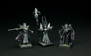 This miniature really had a long journey. I still remember that the first one I painted back in 1998 became a victim of black undercoat instead of vanish. A fatal failure and thorn in my side leading to a bath of aceton a couple of years later. But instead of a new painting she was abandoned in a black box of 5th Edition miniatures. The try to make her a center piece of my 6th Edition army failed and she never was finished. I am more than happy that this shame is deleted in my long list of fails. Now she is having her deserved place in my cabinet leading an army of respectable Dark Elves.